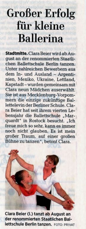 Sie ist erst zehn Jahre alt und ein Ausnahmetalent. Clara wurde als einzige Ballerina aus Mecklenburg-Vorpommern für die Staatliche Ballettschule in Berlin auserkoren.